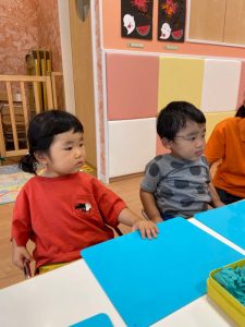 まずは粘土で遊ぶ時のお約束を聞きます![]()