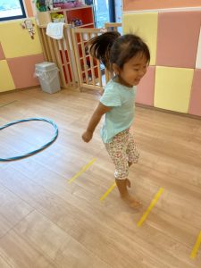 ①フラフープの中を10回ジャンプ!!!