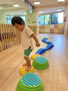 ③へびさん平均台を落ちないように慎重に渡って~