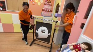子どもたちは「大丈夫かな~?」「治してきてね~!」と