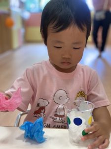 子どもたちも夏祭りごっこを今から