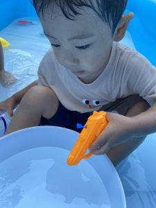 今週は、公園に出かけたりプール遊びをしたり