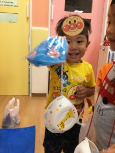 お面をつけて大興奮![]()