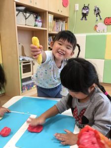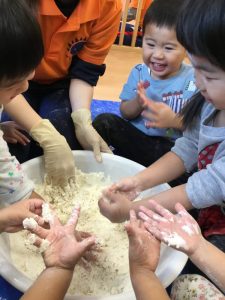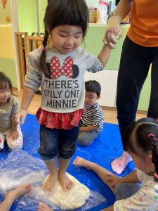 りんご組の子どもたちは小麦粉粘土