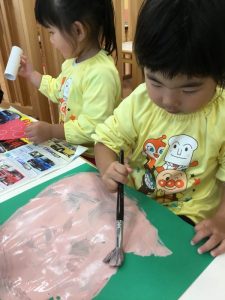 大きな画用紙に絵の具で![]()