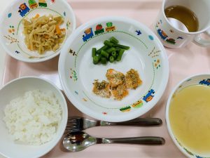 ※鮭は身がやわからく、子どもも食べやすい魚です。みんな「お皿ピカピカになったよ♪」と完食でした。