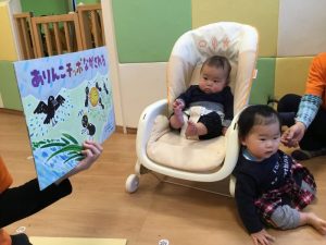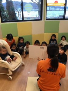 久しぶりの紙芝居に大喜びの