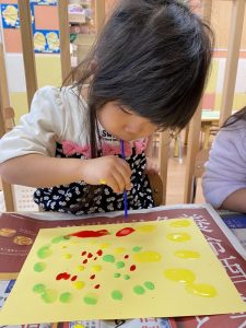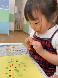 〝吹き絵〟に取り組むりんご組さん?