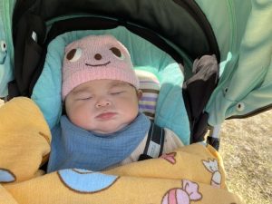 ぽかぽか陽気が心地よくバギーでスヤスヤ![]()