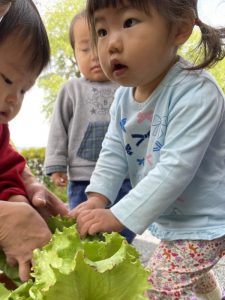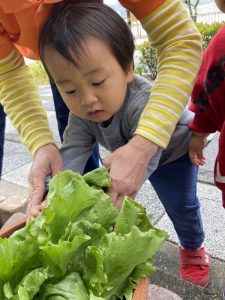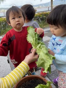 収穫したレタスは給食のお味噌汁に![]()