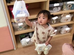 いちご組さんも自分でオムツを持ってトイレへ![]()