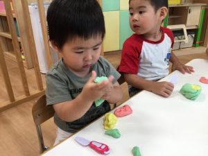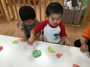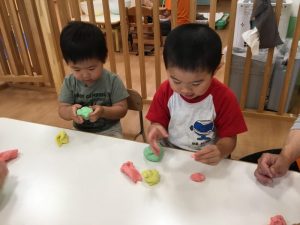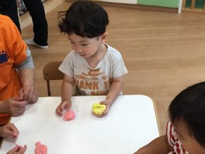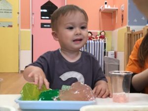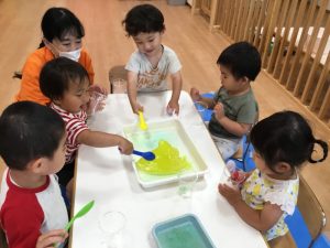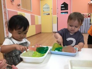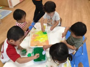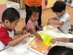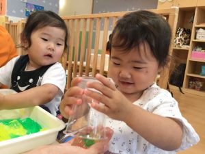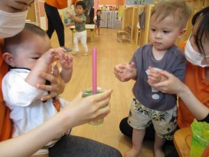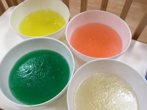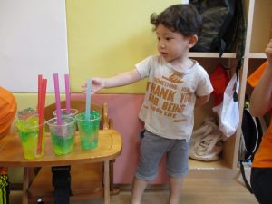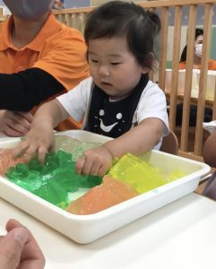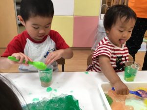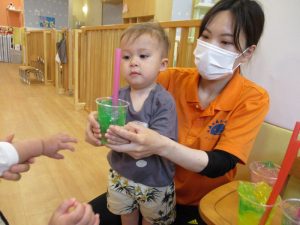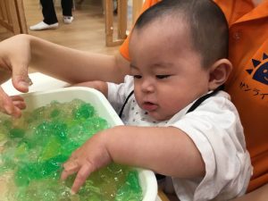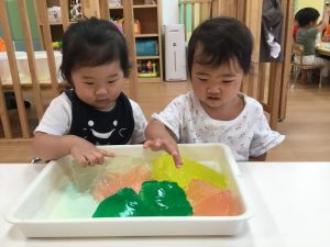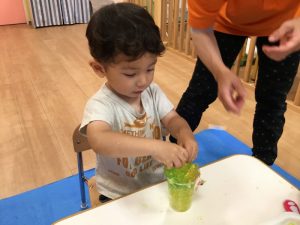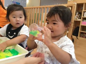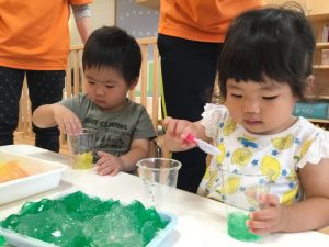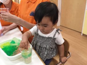 カップの中の寒天が落ちてくる様子を楽しんだり
