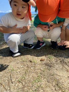 りんご組さんは湖岸にお散歩に出かけました![]()