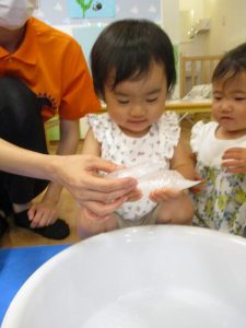 もも組さんは〝片栗粉ねんど〟と〝氷〟で