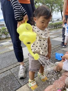 ゾウさんのジョウロに水を入れて![]()