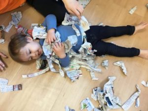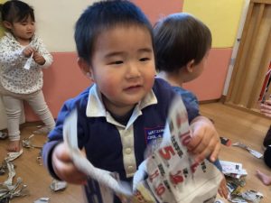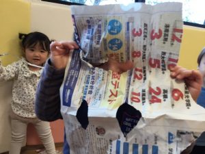 室内遊びでは新聞遊びや