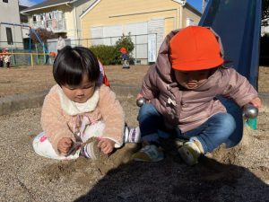 お友だちと一緒に砂遊び