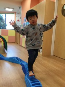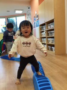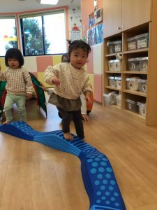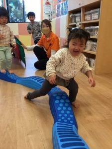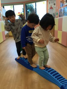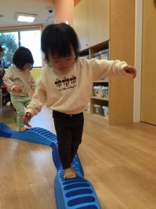 りんご組?のお友だちは平均台を上手に渡っていました![]()