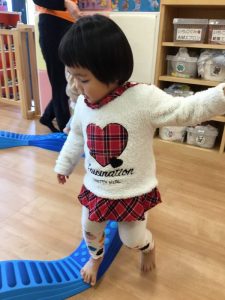 両手でバランスをとりながら上手に渡れるようになってきました![]()