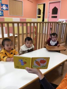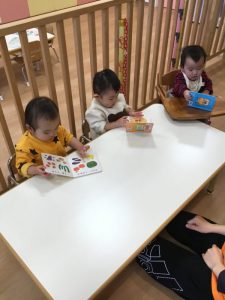 0歳児もも組の子どもたちの様子です![]()