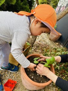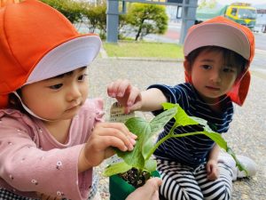 りんご組のお友だちが、野菜の苗を買いに行き