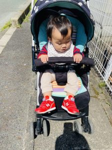 もも組?のお友だちは、ベビーカーに乗って![]()