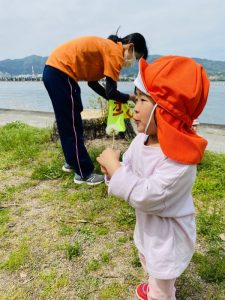 りんご組?のお友だちは、湖岸や川沿いへ行きました。