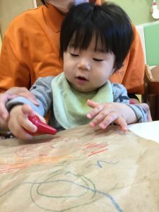 大きな紙にお絵描きタイム🎶