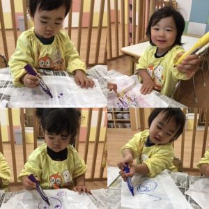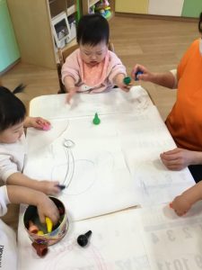 大きな紙にお絵描きを楽しんでいましたよ🎶