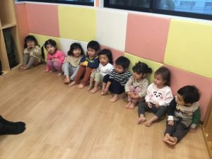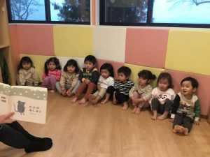 子どもたちは、窓の外を見て雪に興味津々❄️