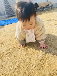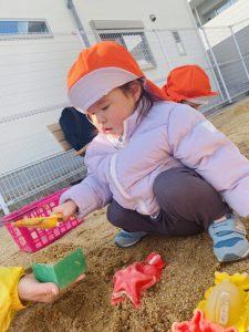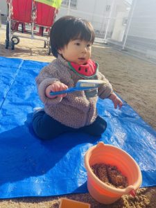 0歳児クラスのお友だちはお砂場遊びをしました。