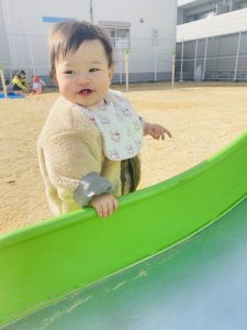 滑り台に辿りつく事が出来て、この笑顔![]()
