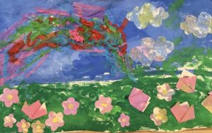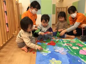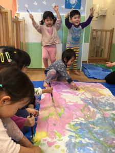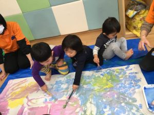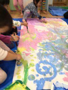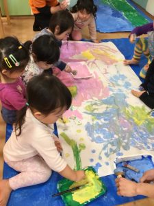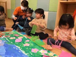 お花紙を小さく破って虹を作ったりと集中して取り組んでいました![]()