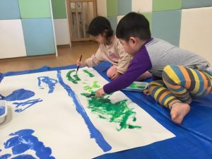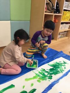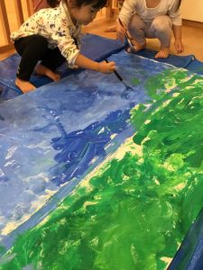 「こっちはみどりだよね!」と塗る場所を確認し合いながら進めていき
