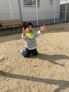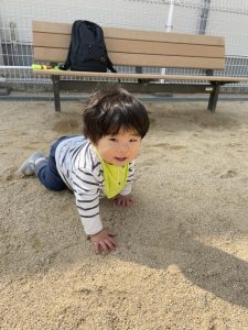 以前は、砂の感触を嫌がってしまう姿もありましたが