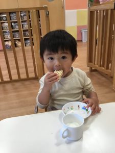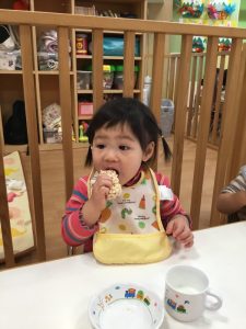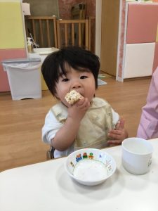 りんご組のお友だちは、お皿や口に手を添えたりと