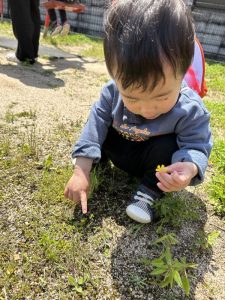 お花を摘んで保育者にプレゼント🎁してくれる場面も