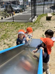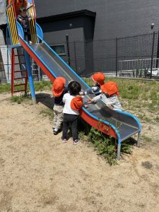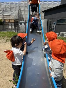 公園に着くと、大好きな滑り台を楽しむ子どもたち👦🏻