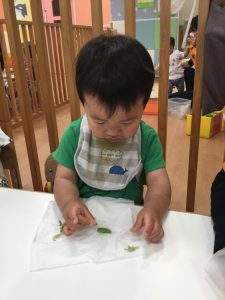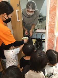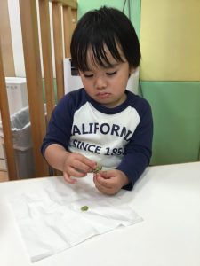 “お豆さんでてきた!”と興味津々で覗き込む子どもたち🎶