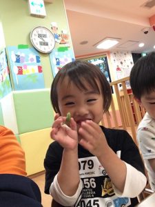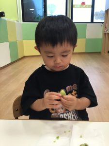 食育でそら豆の皮剥きをしました🫛