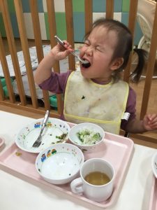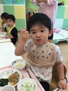 シリコンのスプーンをカミカミするお友だちも![]()