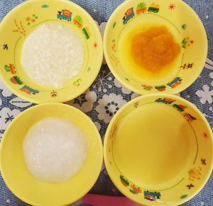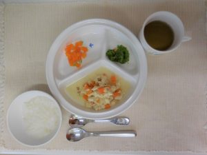 粥 野菜スープ 豆腐のくず煮 玉ねぎと人参のとろとろ煮