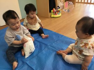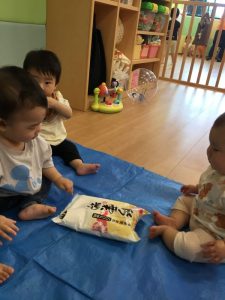 もも組のお友だちは、片栗粉粘土を楽しみました!