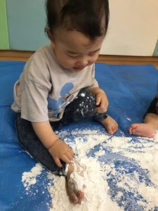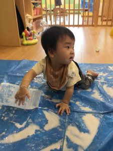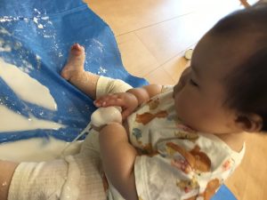 水を加えてトロリとした感触を楽しんだり全身で楽しんでくれました😊