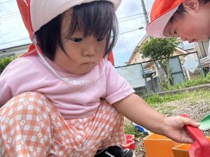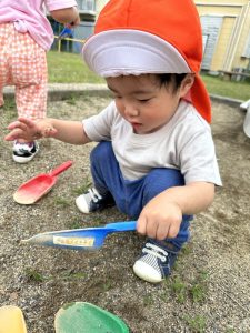 砂場で、よいしょ!よいしょ!と穴を掘ったり