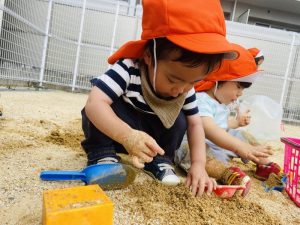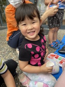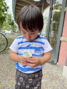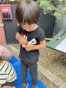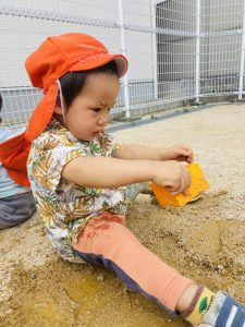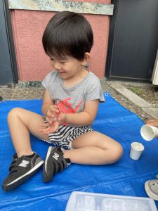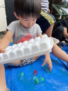 「うわー冷たいね!」と言いながら感触を楽しむ子どもたち^^