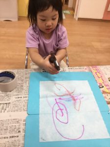 まずは、半紙に水性ペンでお絵描きを始めます!