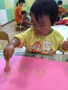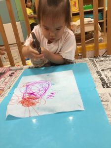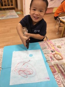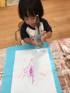 描いた絵が綺麗に滲んでいき嬉しそうにしていました^^