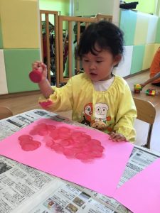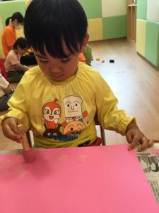 りんご組のお友だちはスタンプを使って製作をしました🎨