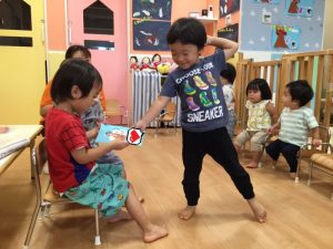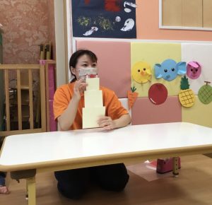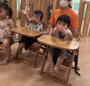 1、2歳児クラスのお友だちの姿を真似て